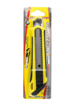 The cutter rail is made of stainless steel covered with ABS with non-slip rubber on the side. There is a blade breaker at the back. There is a double lock system. It comes with a clip or waist that can rotate 360 degrees for ease of use, such as carrying to high places or hiking. And there are 5 spare blades in the unit.