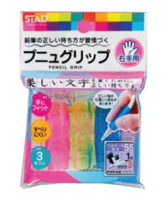 KUTSUWA Pencil-Pen Grip Rubber Cover STAD Model comes with a set of 3 pieces in a pack (3 colors: pink, blue, yellow) Genuine licensed product from Japan Designed to help hold pencils and pens correctly, reduce finger fatigue and make writing or drawing easier and more convenient