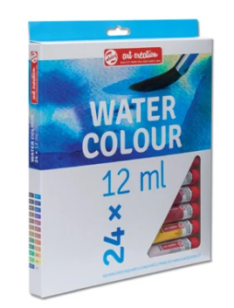 Watercolor set suitable for children and students. Bright colors, fine texture, transparent, highly resistant to sunlight. Size 12 ml. 24 colors